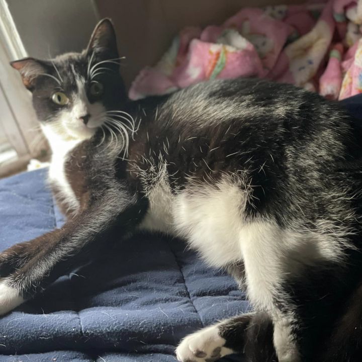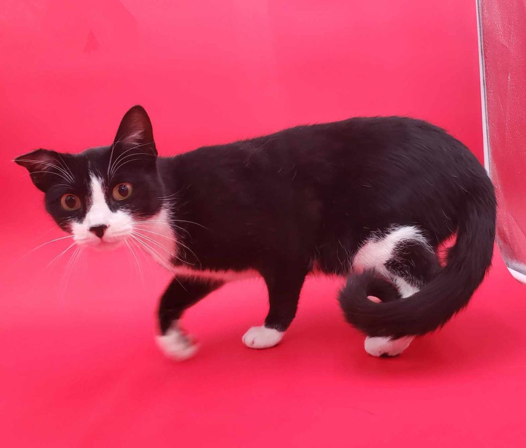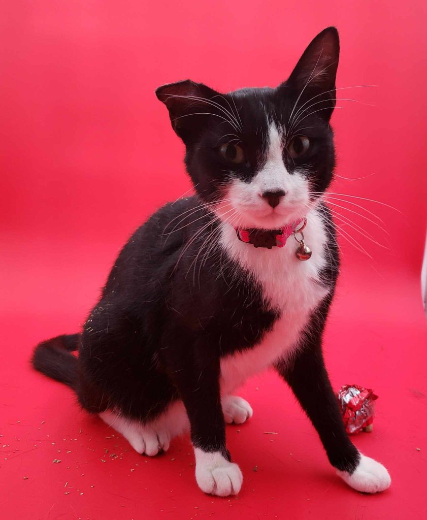 Meet Gnocchi, the delightful two-year-old feline with a striking black and white coat and an endearing crooked ear. Despite her playful antics and affectionate nature, Gnocchi remains the longest resident at the rescue, a mystery to all who meet her. She charms everyone with her playful spirit and amicable demeanor, especially her fondness for befriending other cats. Gnocchi’s responsible side shines through her litter box training and her up-to-date vaccinations, spaying, and microchipping. Not to mention, she’s tested negative for both FIV and FeLV, making her the picture of health and vitality. It’s puzzling why she hasn’t found her forever home yet, but whoever adopts her will be gaining a loyal and loving companion for life.
